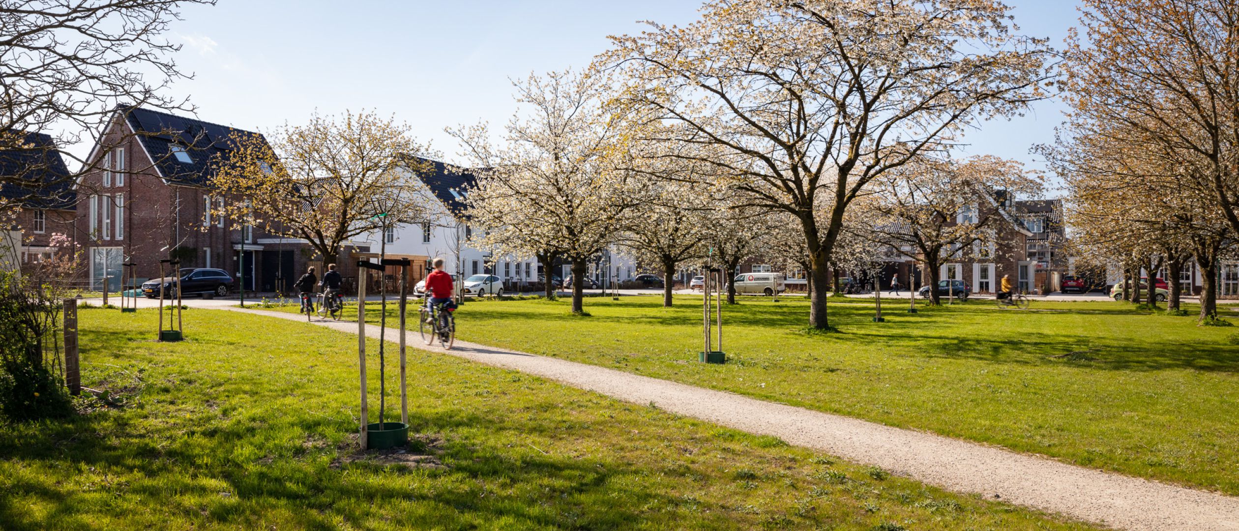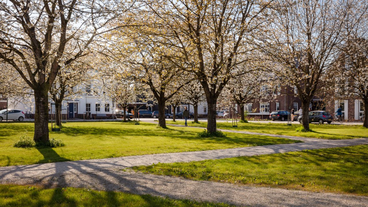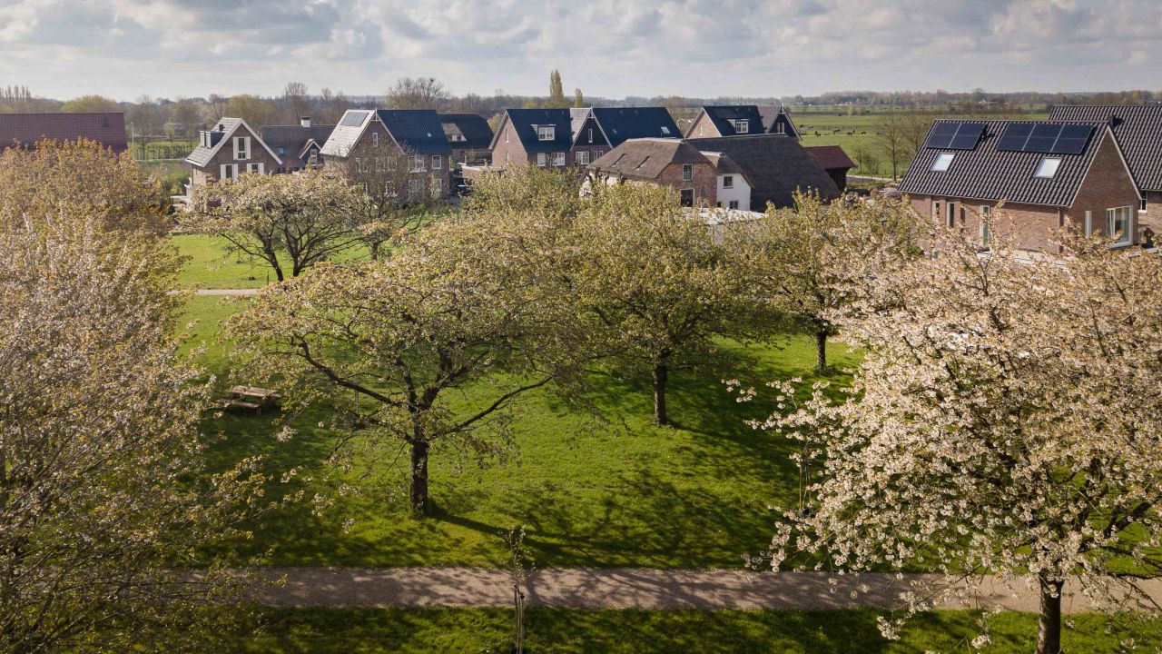Joep van Baast en John Boon besloten een bestaande boomgaard en een Romeins grafveld te behouden als centrale plekken binnen het buurtschap. Het bleek een flinke puzzel om de juiste sfeer te bewaren en iedere woning een fijne plek te geven. Niet alleen de woningen maar het hele stedenbouwkundige plan werd bovendien volgens ambitieuze duurzaamheidsprincipes ontworpen (GPR-stedenbouw). Het resultaat dat Explorius heeft bereikt voor de gezinnen in de regio Utrecht die een bijzondere woonplek zochten is fantastisch. Met de insteek die ons team koos, is niet alleen een heel duurzaam buurtschap ontstaan maar zijn ook de harten van de bewoners gestolen. Zeker toen ze dit voorjaar voor het eerst van de bloeiende bloesems konden genieten!”
