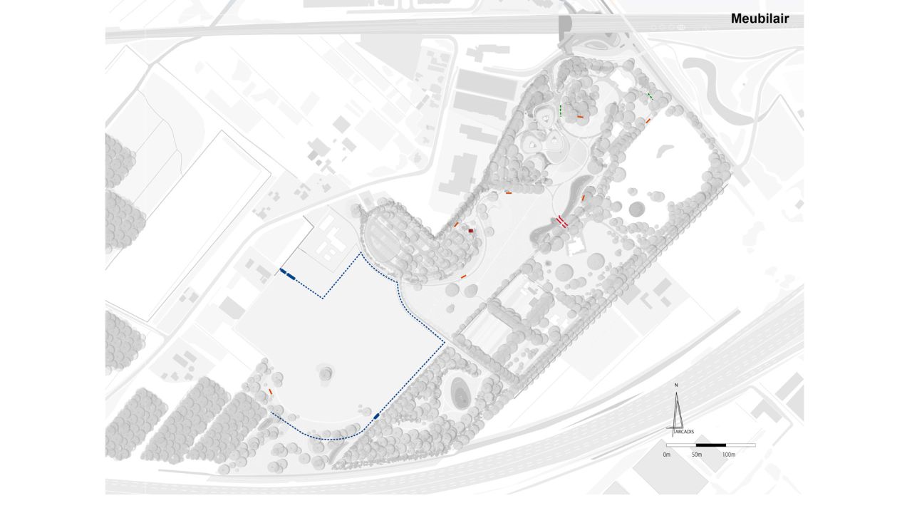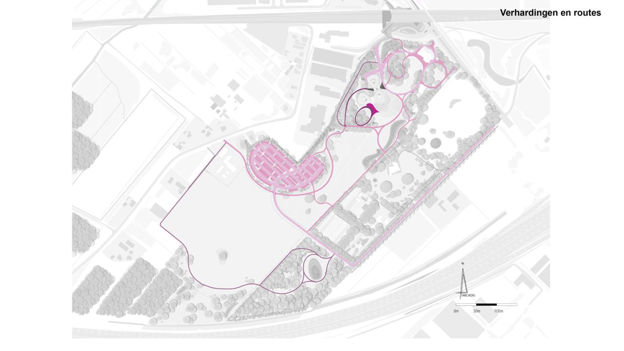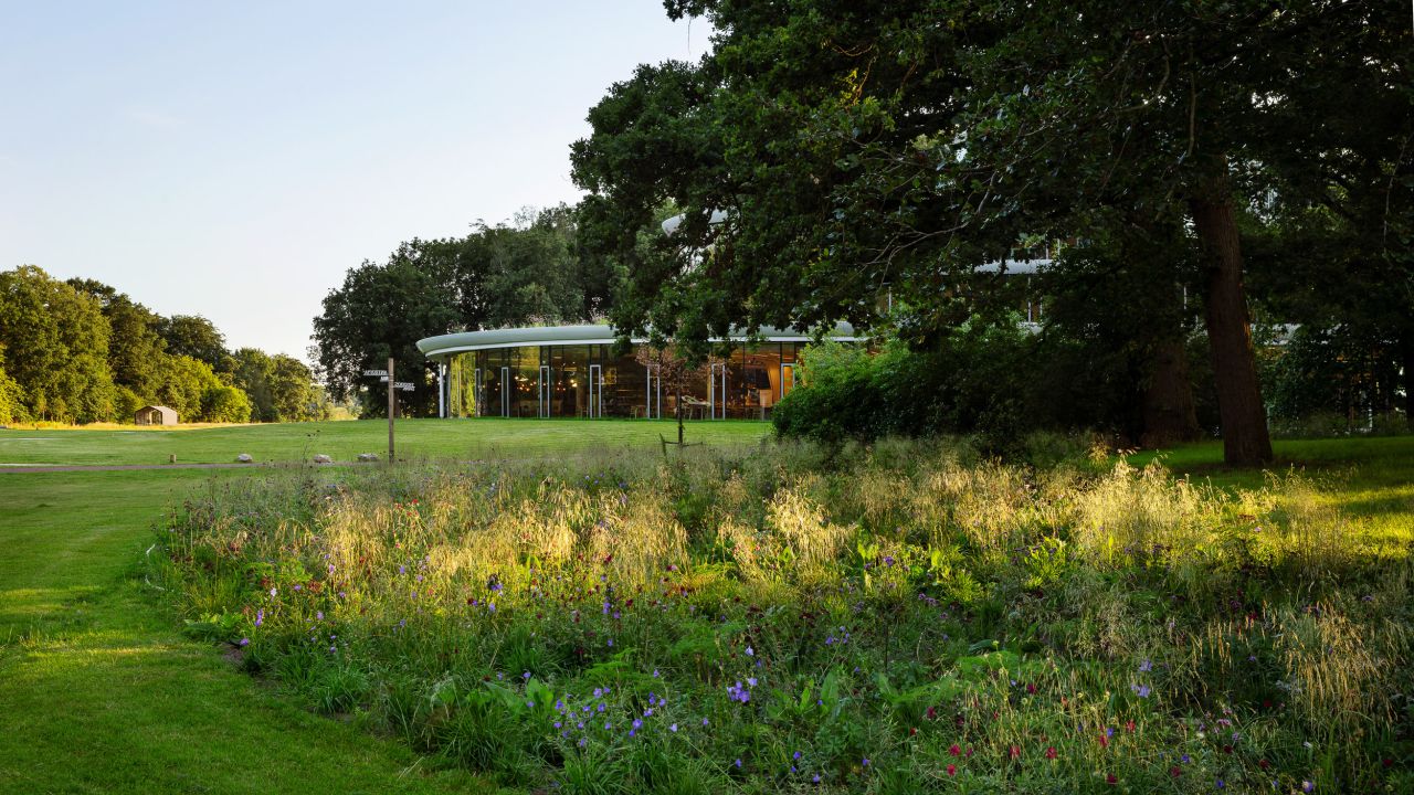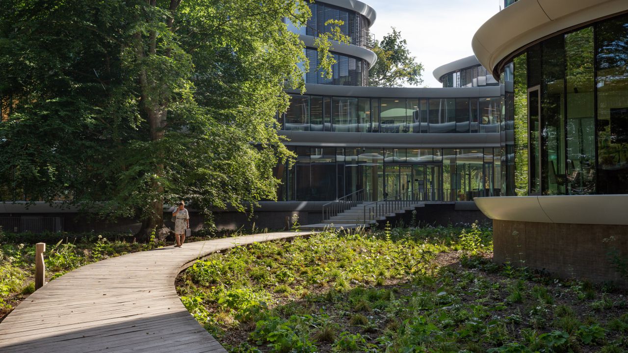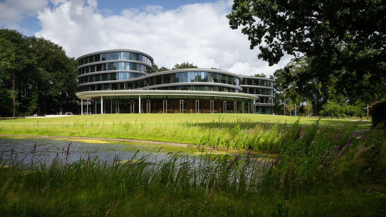 Het nieuwe hoofdkantoor voegt zich als een nieuwe tijdslaag in het landschap van het landgoed. Zo is bij de plaatsing en vorm van het gebouw bijvoorbeeld rekening gehouden met vliegroutes van vleermuizen en afstand tot de bestaande bosrand. Nieuwe boomgroepen versterken de lange zichtlijnen vanuit het kantoor over het landgoed. Afwisselende routes leiden de bezoekers langs schilderachtige plekken als het amfitheater en de spiegelvijver. Het landgoed is opgebouwd uit een opeenvolging van intieme ruimtes rondom het gebouw tot een weids uitzicht bij de A12.