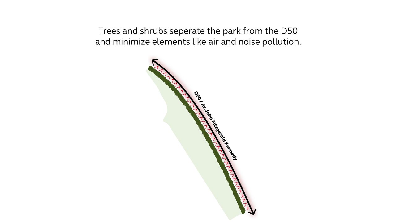 Parijs, Frankrijk - De drukke D50 verbindt de stad Parijs met Parc de l'Aire des Vents en het 2024 Olympic Media Village. Het is een brede weg, dicht gelegen bij het buurtje 'La Comète'. De luchtkwaliteit langs deze weg en in de wijk La Comète liet te wensen over en diende te worden verbeterd. Binnen de visie van de stad om Parijs drastisch te vergroenen en om een groene verbinding te leggen tussen het Media Village, het park, buurt La Comète en de rest van de stad, ontstond het idee om hier een groene, vriendelijke plek van te maken voor zowel bewoners van de buurt als voor bezoekers.