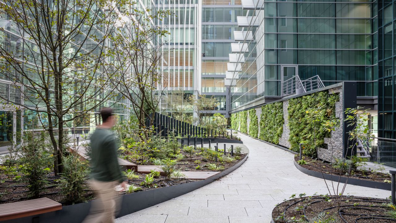 CBRE Investment Management, de eigenaar van het WTC, vroeg Arcadis Landschapsarchitectuur en Stedenbouw een ontwerp te maken voor de patio en hier een aantrekkelijke en toekomstbestendige buitenruimte van te maken. Vanwege het succesvol afgeronde ontwerp- en realisatietraject van de daktuinen op de nieuwste uitbreiding van het WTC, Tower Ten, is er het vertrouwen in Arcadis om de ambities en beoogde uitstraling van het WTC om te zetten tot een hoogwaardig en gebruiksvriendelijk ontwerp voor de patio: het nieuwe groene hart van het World Trade Center.