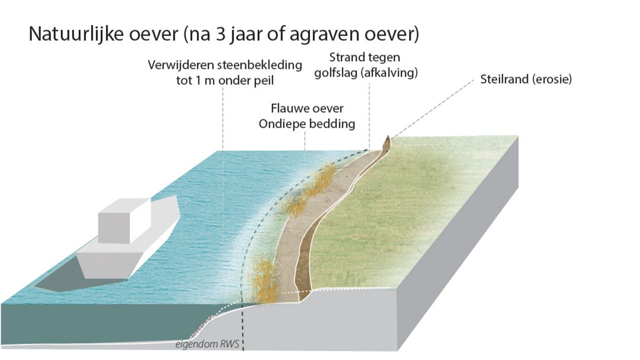 De aanpak herintroduceert dynamische processen in het rivierengebied. Soms zijn het simpele en goedkope ingrepen, zoals het ontstenen van een oever. De rivier krijgt hierdoor ruimte om de oever te eroderen waardoor steilrandjes kunnen ontstaan waarin de ijsvogel of oeverzwaluw zijn nesten kan bouwen. En door flauwe land-water overgangen groeien er meer waterplanten die een voedingsbron zijn voor insecten en vissen. Zo bouwen we samen aan een stabieke ecologische pyramide in het rivierengebied.