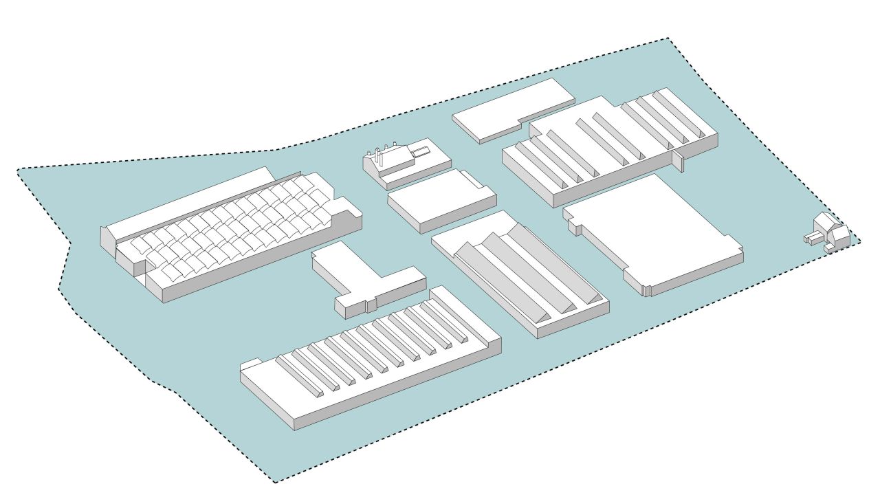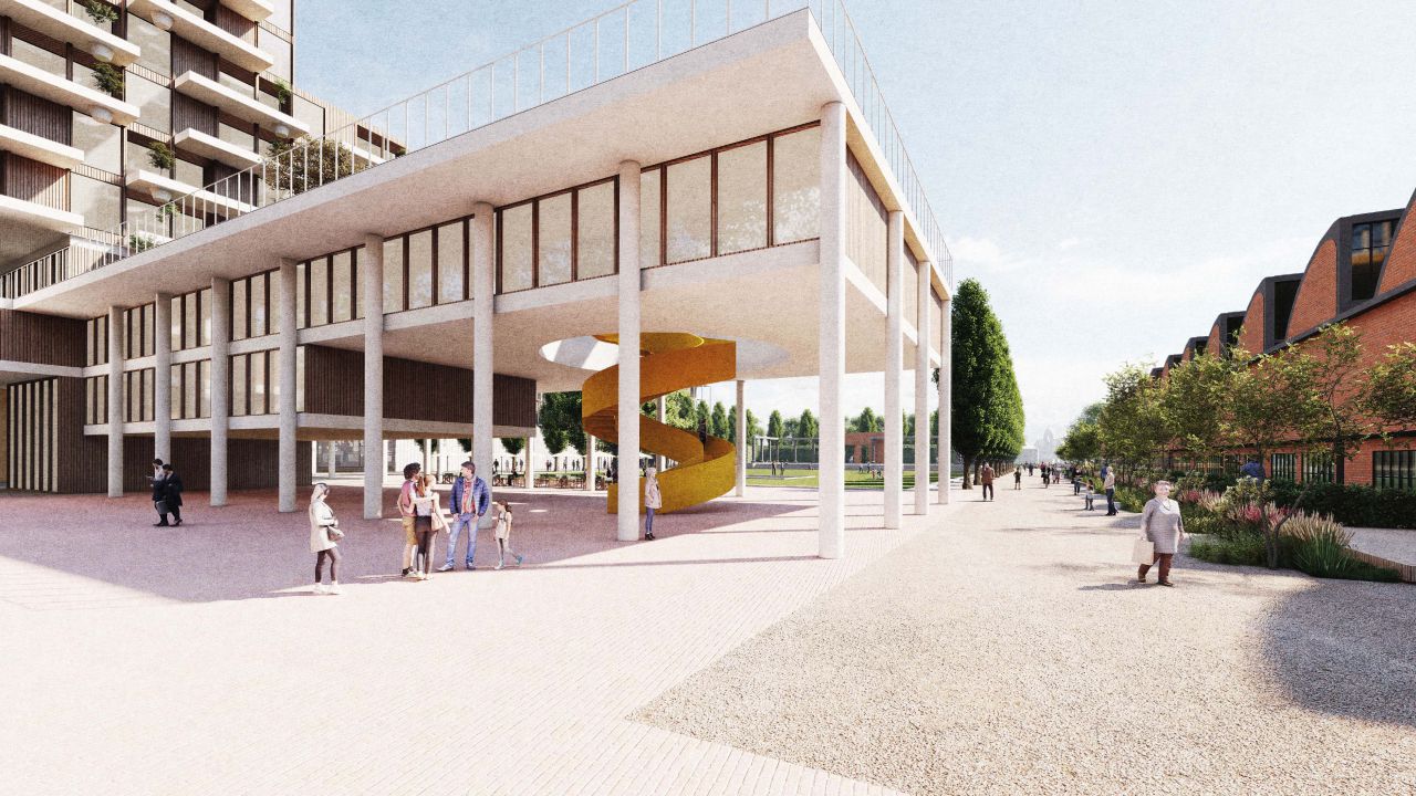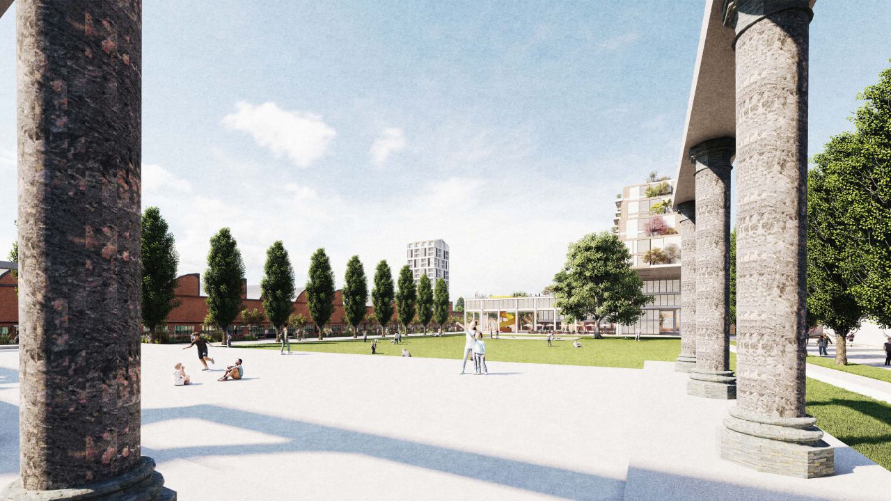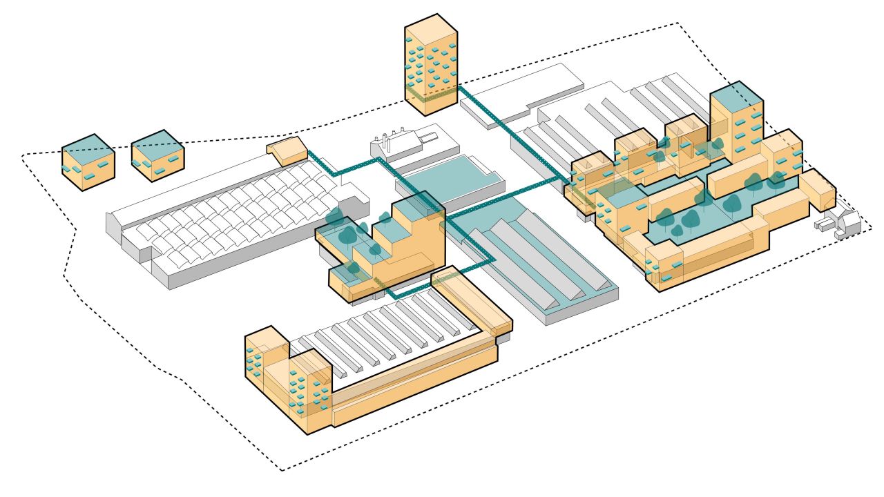 No large-scale demolition, but a sustainable transformation. Seventy-five percent of the buildings will be converted into residences, studios, and workspaces for the creative industry," says Landscape Architect, Architect, and Urban Planner Hans Smolenaers. "It was important for us that the existing green and tree structures on the site would be preserved and enhanced by planting more trees." The design incorporates not only existing structures but also the reuse of materials already present, providing an efficient and sustainable solution. "The circularity of existing materials is evident in both the frameworks of various buildings and materials in the outdoor space," says project architect Luc Veeger. This includes the fire pond, the characteristic concrete shell elements of the shed roofs, the stelcon slabs, and even the structures of the pipe streets. This approach not only ensures efficient use of resources but also preserves the essence of this place.