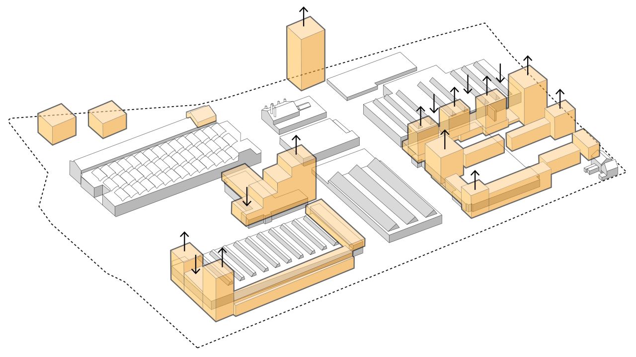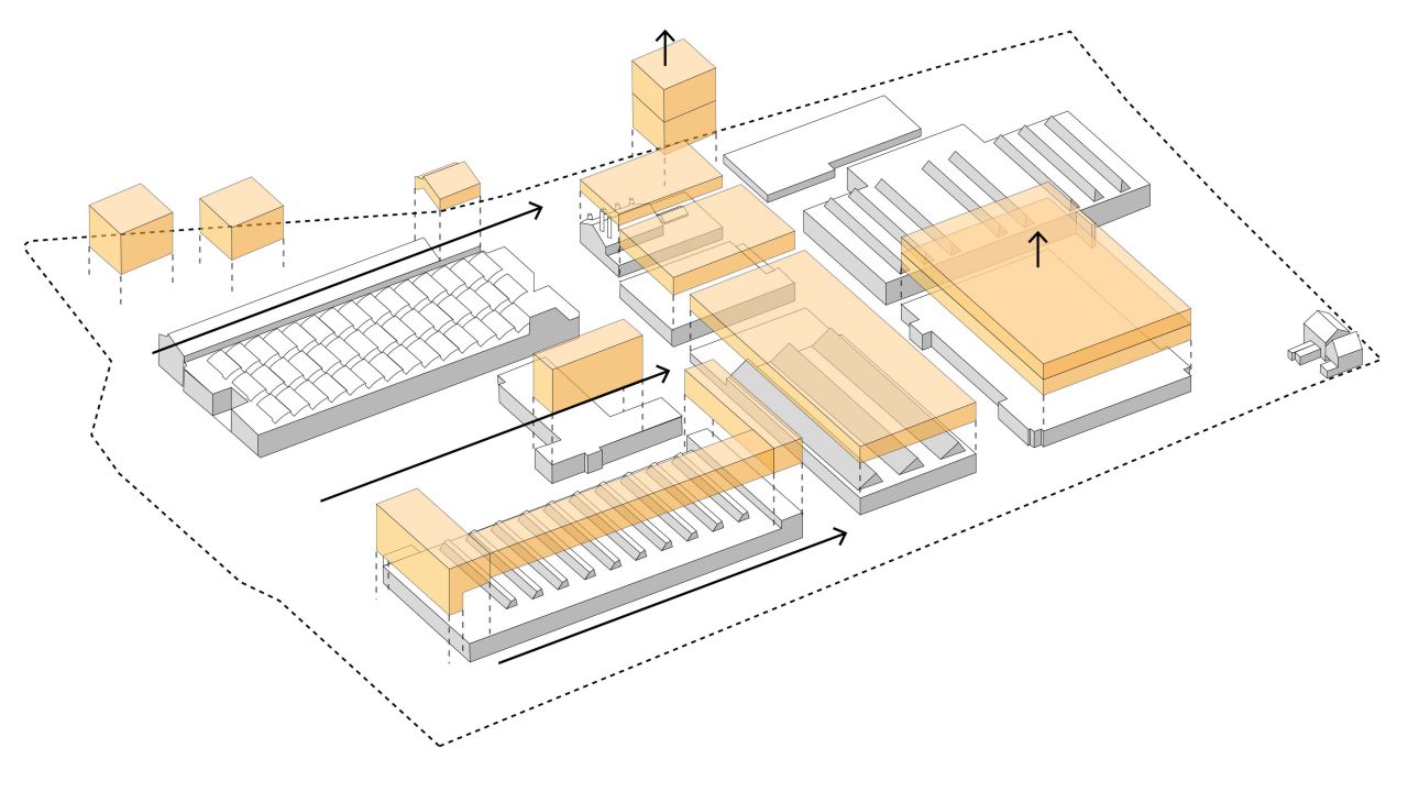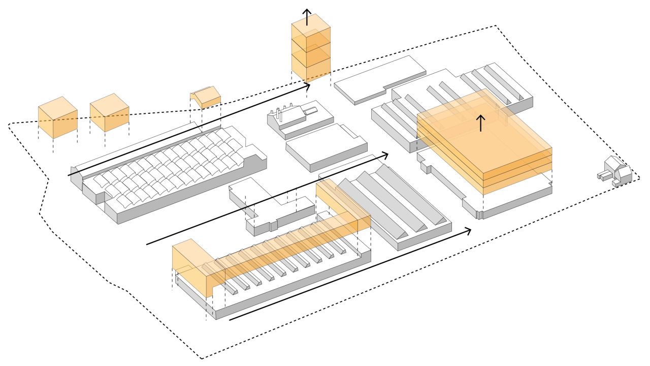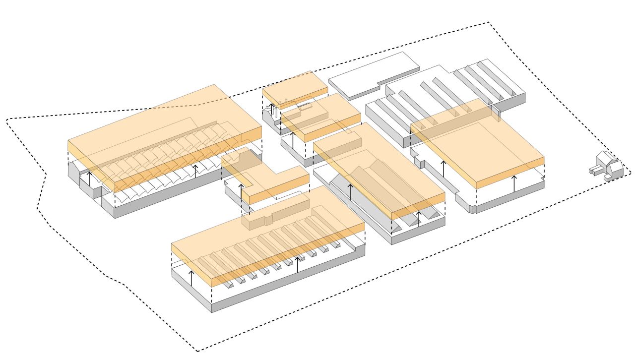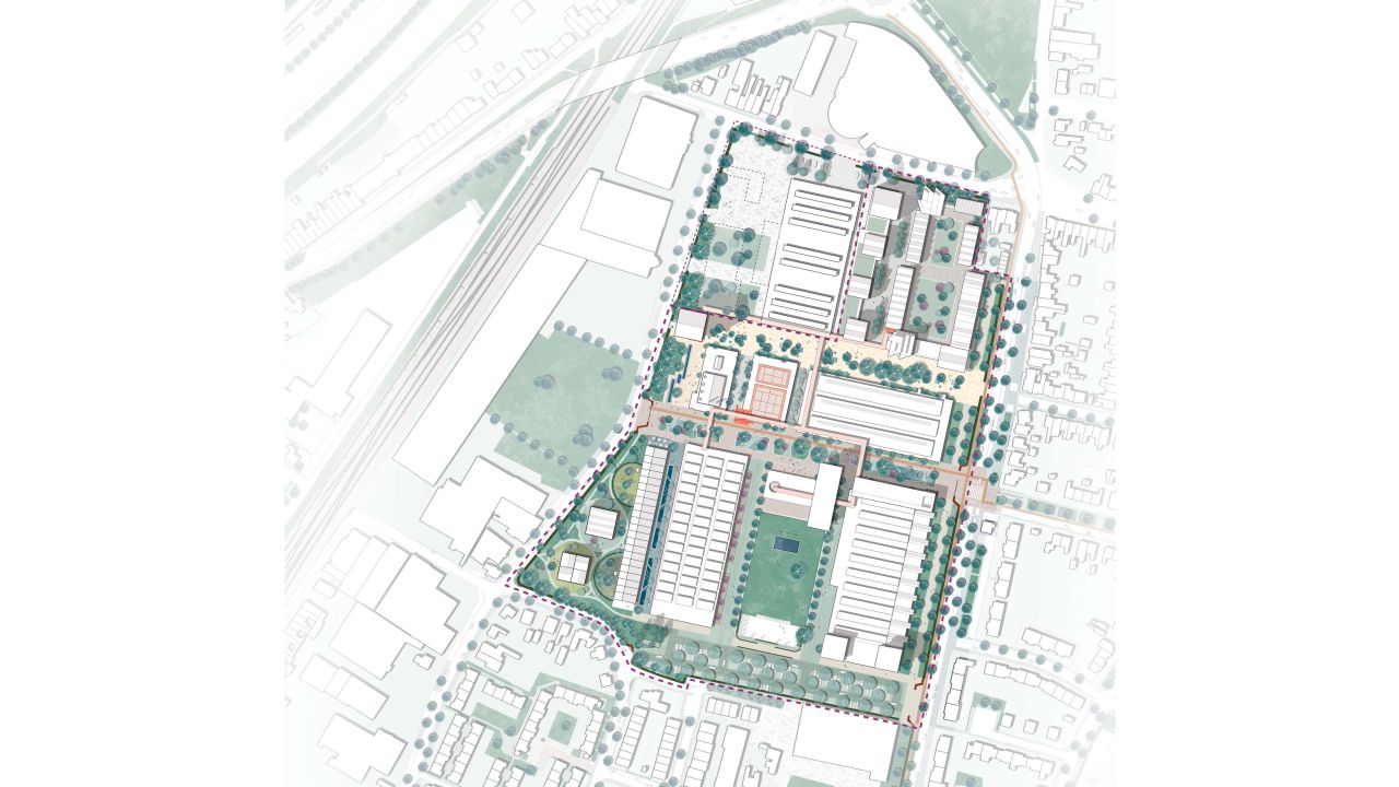 No large-scale demolition, but a sustainable transformation. Seventy-five percent of the buildings will be converted into residences, studios, and workspaces for the creative industry," says Landscape Architect, Architect, and Urban Planner Hans Smolenaers. "It was important for us that the existing green and tree structures on the site would be preserved and enhanced by planting more trees." The design incorporates not only existing structures but also the reuse of materials already present, providing an efficient and sustainable solution. "The circularity of existing materials is evident in both the frameworks of various buildings and materials in the outdoor space," says project architect Luc Veeger. This includes the fire pond, the characteristic concrete shell elements of the shed roofs, the stelcon slabs, and even the structures of the pipe streets. This approach not only ensures efficient use of resources but also preserves the essence of this place.