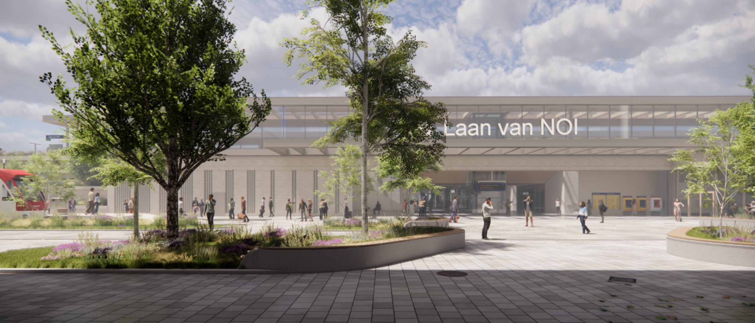 De afgelopen jaren werkten we intensief aan de toekomst van station Laan van NOI. Dit station - middenin stedelijk gebied - ligt aan de spoorlijn Leiden - Dordrecht (de Oude Lijn): dé belangrijkste verbinding van de zuidelijke Randstad. Als consortium Arcadis, Team V & Imce Hofman pakten we vier grote uitdagingen aan: verstedelijking, betere bereikbaarheid, een gezondere leefomgeving en het stimuleren van economische groei.