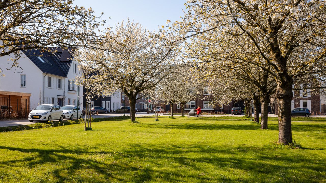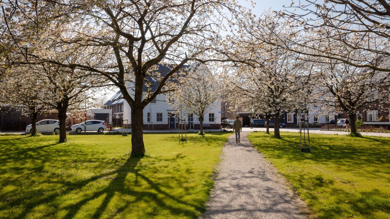 Joep van Baast en John Boon besloten een bestaande boomgaard en een Romeins grafveld te behouden als centrale plekken binnen het buurtschap. Het bleek een flinke puzzel om de juiste sfeer te bewaren en iedere woning een fijne plek te geven. Niet alleen de woningen maar het hele stedenbouwkundige plan werd bovendien volgens ambitieuze duurzaamheidsprincipes ontworpen (GPR-stedenbouw). Het resultaat dat Explorius heeft bereikt voor de gezinnen in de regio Utrecht die een bijzondere woonplek zochten is fantastisch. Met de insteek die ons team koos, is niet alleen een heel duurzaam buurtschap ontstaan maar zijn ook de harten van de bewoners gestolen. Zeker toen ze dit voorjaar voor het eerst van de bloeiende bloesems konden genieten!”