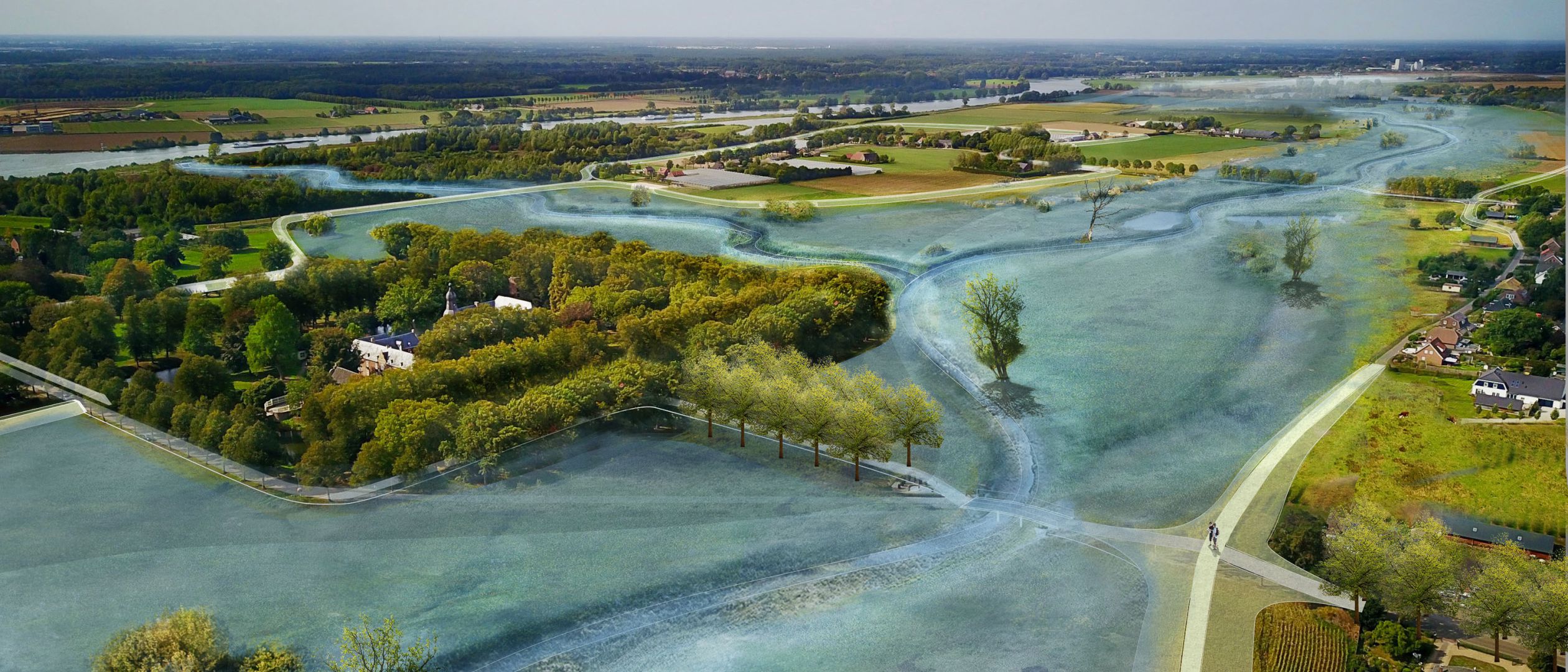 Limburg, Noordelijke Maasvallei - Wat er de afgelopen dagen in Limburg is gebeurd is rampzalig en we leven mee met alle slachtoffers. In de toekomst zullen we vaker met dit soort extreme weersomstandigheden te maken krijgen door het veranderende klimaat. Dit maakt het noodzakelijk om ons landschap voor te bereiden op de toekomst.